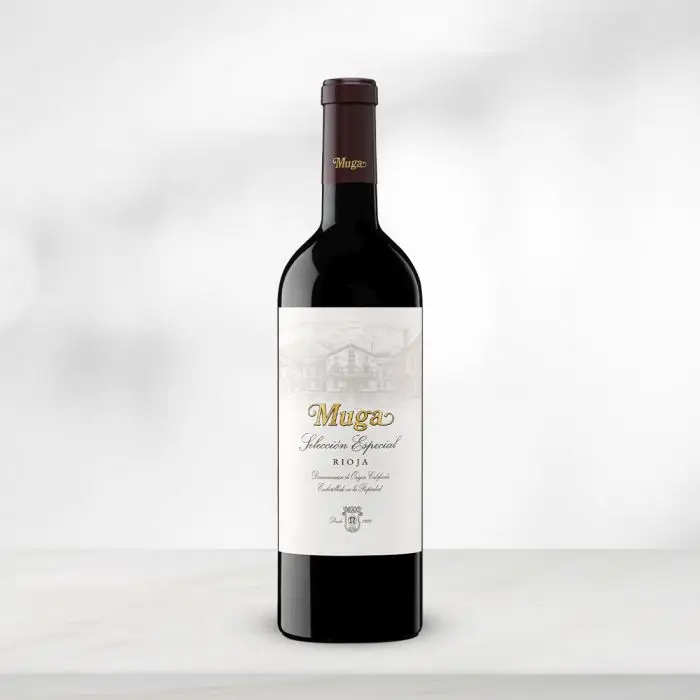 Muga Selección Especial er, som navnet antyder, lavet på særligt udvalgte druer fra Mugas bedste marker med de ældste vinstokke fordelt over 70% Tempranillo, 20% Garnacha, 7% Mazuelo og 3% Graciano. Efter gæring på druernes egen gær har vinen lagret 6 måneder i store og gamle træfade, 26 måneder i egetræsfade og minimum 12 måneder på flaske.